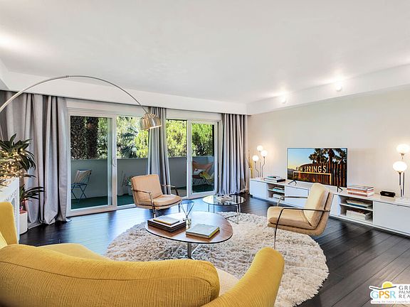Stunning Top-Floor Lease in South Palm Springs with Incredible Mountain Views! Located in the desirable Canyon View Condos community between the Indian Canyons and Mesa neighborhoods, this beautifully furnished 2 bedroom, 2 bath condo offers 1,163 square feet of light-filled living space and unforgettable views. Perched on the top floor and situated at the end of the building, this residence enjoys privacy and exceptional panoramic mountain vistas. You have views from the expansive 44-foot covered patio, living room, bedrooms and even the kitchen has spectacular views. The large primary suite features direct access to the patio, generous closet space, dual vanities, and a walk-in shower. The second bedroom is versatile with a sleeper sofa and dedicated workspace, perfect for guests or remote work. In-unit laundry, tasteful mid-century furnishings, and abundant natural light complete the space. Canyon View Condos, built in 1963, offers classic mid-century charm with carport parking, a large community pool and spa, greenbelt areas, elevator and stair access. All of this in a prime South Palm Springs location close to hiking trails, Indian Canyons Golf Resort, and just minutes to downtown.