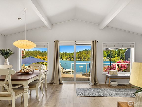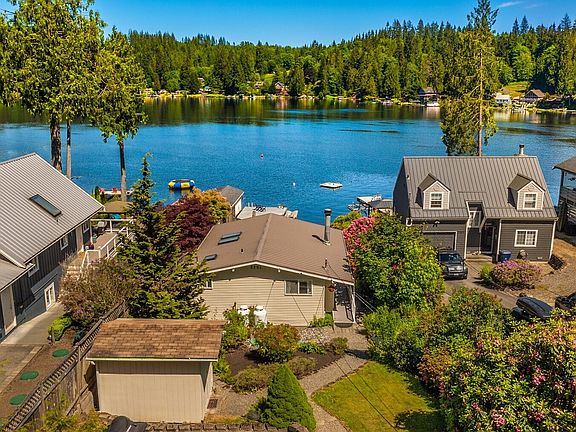 Live the resort lifestyle in this wonderful waterfront home. Every day is a vacation at Lake Roesiger, less than one hour from Seattle or Bellevue. Host the best beach parties of the season with 50 feet of waterfront and a sprawling 7,500 sq ft lot with driveway for boat storage, manicured lawns, multiple view decks, a 450 sq ft dock & your own beach. Jetski by day & roast marshmallows by your firepit at night. Ample space for volleyball, badminton or croquet. Seriously charming cottage with unobstructed lake views from both levels. Make memories to last a lifetime with this open kitchen, generous dining room & vaulted ceilings all flowing seamlessly to your beachfront decks. Why wait? Start your best summer today!