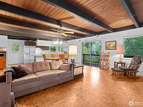 Escape to your own slice of PNW heaven with this peaceful Deschutes River cabin! This 2 bed, 2 bath home sits on a full acre with a brand-new deck where you can fish right into the river. Inside, the open kitchen flows into a stunning living room with planked ceilings, exposed beams, and a cozy wood-burning fireplace—full of rustic charm. The home features a newer roof and is wired for a generator, with a new unit in the well house. A 704 sqft attached garage/shop adds space for hobbies, gear, or storage. Riverfront living doesn’t get better!
