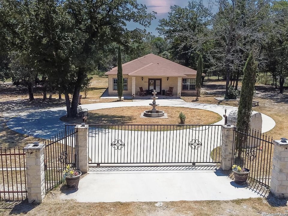 Welcome to Hickory Hollow, outside city limits, You will be greeted with a gorgeous remote rock/rod iron fence with 2 gates with the main gate opening up to a large circular drive. As you enter home through the stunning double doors you will see a wide foyer that extends from the front door to the back door, elegant tiled floor that flows through out the ENTIRE home. Crown molding , custom made Persiana window coverings in common rooms. In kitchen you can enjoy a beautiful view of the oaks right outside your dining room window while enjoying every meal (plenty of natural light ). 2 breakfast bars, granite counter tops throughout the ENTIRE kitchen with plenty of cabinets for storage and an enticing back splash to compliment the counters in kitchen and bathrooms. Large laundry room. Outdoors you will see photogenic oak trees throughout the property that provide endless shade from the Texas heat. When you walk onto the outdoor pavilion you will see a gorgeous custom-built granite/rock table for seating. This pavilion is positioned right under numerous oak trees that provides a park like setting. The detached garage is completely finished inside and can easily transform into an additional dwelling if need to. Attached to the garage is an area to store all your ATV receational vehicles/toys. There is a 1/2 bath on side of garage for use during your outdoor festivities. Surveillance system on property will convey. Thank you so much for your interest.