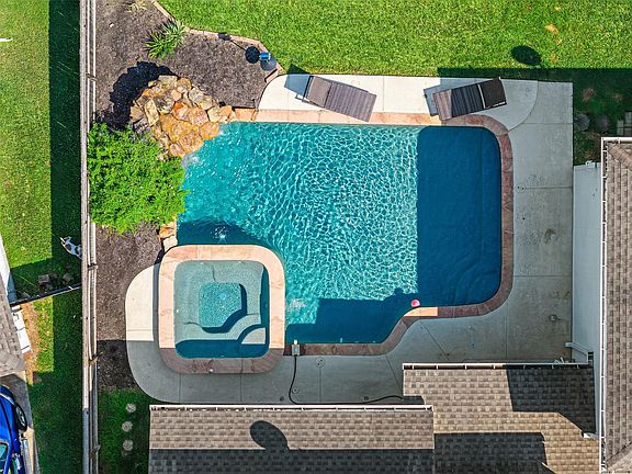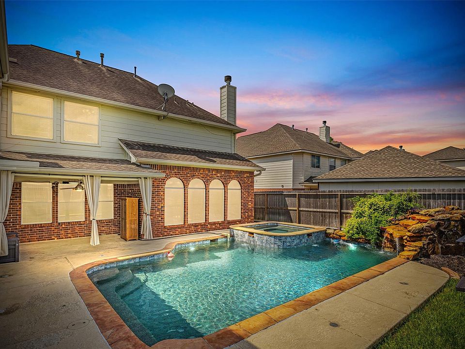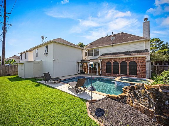 RARE FIND! Stunning 5-bed, 3.5-bath 2-story home w/ 2-story garage, heated pool & spa, & no back neighbors! Features new LVP floors downstairs, primary suite w/ updated bath, island kitchen w/ granite & SS appliances, & a quartz gas fireplace w/ cool sphere fire balls. Upstairs boasts hardwood floors, 4 secondary bedrooms, 2 full baths, & game room. The backyard oasis features a sparkling pool & spa w/ a pool safety alarm, a storage shed, mounted patio TV, & patio curtains. Smart home upgrades include Eufy & Ring cameras, Ring Doorbell, keyless entry doors, & Nest thermostats. Recent updates: water heater (2025), fence (2024), pool resurfaced/re-tiled (2021), pool equipment replaced (2021), HVAC (2021), gutters (2018). Conveniently located within 5 minutes from Costco, Memorial Hermann Hospital, Katy Asian Town, Cinemark & Houston Community College. Other nearby attractions include Katy Mills Mall & Typhoon Texas Waterpark. Zoned to desired Katy ISD schools. Schedule a showing today!