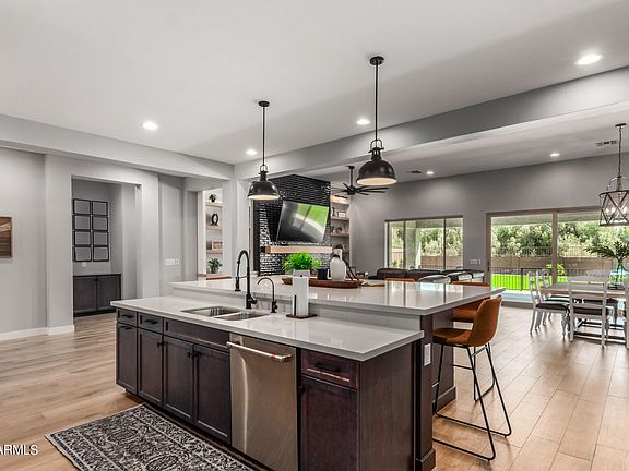 ** Recent huge price reductions. ** This home won best of tour. Impeccable 2022 built Taylor Morrison home in Queen Creek. Tile floors throughout w/zero carpet. 3625 sq/ft single story on a 12,600 sq/ft lot backing to QC wash/trail w/no neighbors behind. 3 car garage. Enjoy the great room w/custom built media center decorated in black subway tile w/electric fireplace. 4 bed, 3.5 bath, w/office/den & formal living room. Kitchen is bright & open w/huge quartz island, wall oven, large walk-in pantry & gas range. Bedroom 1 w/ensuite bathroom, bedrooms 2 & 3 w/adjoining bathroom. Large master w/huge walk-in closet, dual sinks, tub & dual showers. Newly installed backyard w/synthetic grass, landscape lighting, & RV gate.