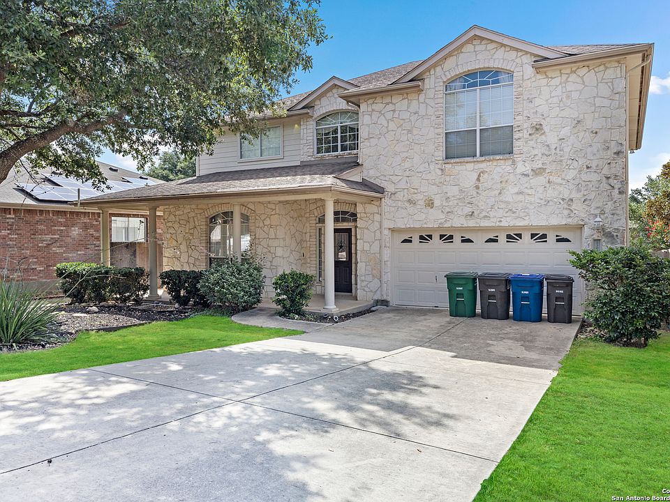 Beautiful five-bedroom executive home in Stone Oak, close to a gourmet grocery store. One bedroom is downstairs, great for a mother-in-law suite. Updated Stainless steel range top, oven, and microwave. Custom blinds as well. Great location just minutes from shopping, nightlife, and golf courses-great extended covered porch in back.