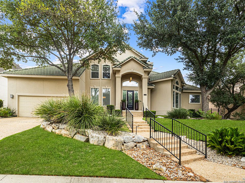 ***Open House Saturday September 27th from 2pm-4pm***Tucked away in the highly sought-after Highlands at Sonterra, this beautifully maintained Mike Hollaway custom home truly has it all. Featuring 5 spacious bedrooms, 4.5 baths, and a dedicated office, this two-story home is thoughtfully designed for both comfort and function. The primary suite is located downstairs with a spa-like bath including a Jacuzzi tub and large walk-in closet. A second bedroom with a full bath downstairs offers flexibility for guests or multigenerational living. Upstairs, enjoy a large game room and three additional bedrooms, each with access to full baths. The gourmet kitchen boasts unique stonework, an island, and a breakfast bar - perfect for casual mornings or entertaining. The light-filled living spaces include French doors and elegant finishes throughout. Step outside to your private backyard oasis, complete with lush landscaping and a relaxing spa, ideal for quiet evenings or weekend gatherings. All of this just 3 minutes to The Club at Sonterra and within 5 miles of five premier golf courses - a dream location for golf and country club enthusiasts.
