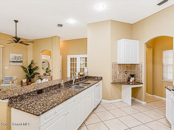 Easy Florida living starts here in Viera East. This 3 bedroom, 2 bath corner-lot home sits on a peaceful waterview, so every day feels a little like vacation. Inside, the bright, open layout flows easily, with tile in the main areas & warm wood floors in the bedrooms. The primary suite feels like a private spa with a Jacuzzi tub, step-in shower, double vanity, & walk-in closet. The kitchen has granite countertops & crisp white appliances & opens to the main living area for easy everyday living & entertaining. Sliders from both the living room and guest suite lead to a huge screened patio overlooking the water—perfect for morning coffee or sunset wine. The third bedroom works well as an office or flex space. Big-ticket updates bring peace of mind: new roof (2022), new hot water heater (2024) , partial new duct work (2025), & fresh landscaping (2025). HOA amenities including clubhouse, pool, gym, tennis, full lawn & sprinkler care, this home offers true, low-maintenance resort living