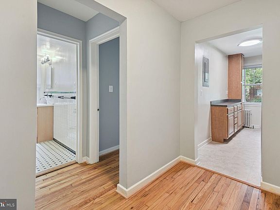 Soon to be staged anew newly photographed. Welcome to your new home in the sought-after community of Rock Creek Village. This beautiful one-bedroom condo offers a warm and inviting atmosphere with 712 square feet of living space. The unit boasts newly refinished hardwood floors that exude sophistication, and it has been freshly painted, giving it a rejuvenated look and feel. The kitchen is a highlight, featuring handsome shaker-style wood cabinets and stainless steel appliances. An open pass-thru connects it seamlessly to the dining area, making entertaining a breeze. The bedroom is spacious, measuring 11.5 by 16.5 feet, and includes two closets for ample storage. The vintage black and white tile and cast iron tub in the bathroom add a touch of timeless charm. While this unit does not presently have a washer/dryer, it's worth noting that owners are allowed to install them, ensuring the utmost convenience. Alternatively, the community offers a well-maintained laundry room that's both easy to access and equipped with multiple machines, making laundry days a breeze. Rock Creek Village is strategically located, straddling the communities of Chevy Chase, Silver Spring, and NW DC. You'll be just blocks away from the picturesque Rock Creek Park, inviting you to explore the great outdoors, go for leisurely walks, or enjoy cycling adventures. Convenience is at your doorstep, with the Rock Creek Shopping Center just one block away. Here, you'll find a community grocer, a veterinary clinic, the famous Parkway Deli, Chinese carryout, and the delightful Daily Dish Cafe. Stay active with ease, thanks to the nearby Rock Creek Sports Club, a notable gym in the area. The location offers an easy commute to downtown Bethesda, Chevy Chase, downtown Washington DC, as well as northward to Rockville, Baltimore, and beyond. Additionally, the proximity to Beach Drive provides opportunities for leisurely strolls, cycling, or quality time with your favorite pet. Rock Creek Village is one of the area's best-kept secrets, offering an exceptional lifestyle at an unbeatable value. Don't miss out on the chance to call this hidden gem your own. Schedule a viewing today and experience the magic of Rock Creek Village living. Your dream home awaits!