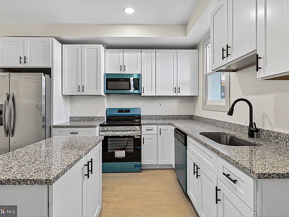 Welcome to this stunning, recently renovated townhouse located in the heart of Baltimore's 21213 zip code. This charming home offers a perfect blend of modern upgrades and classic rowhouse appeal. Step inside to discover a bright and airy main level, featuring an open-concept layout with pristine, light-colored flooring that flows throughout. The spacious living area provides a blank canvas for you to create your ideal living space. The kitchen is a chef's dream, boasting brand-new white shaker-style cabinets, sleek granite countertops, and modern black hardware. It's equipped with all new stainless steel appliances, including a striking teal-accented stove and microwave, adding a pop of color to the otherwise clean and crisp design. A convenient island provides additional counter space and a perfect spot for casual dining. Just off the main living area, you'll find a stylish half bathroom, ideal for guests. The home features three comfortable bedrooms, each with ample natural light from updated windows and the same beautiful flooring found throughout the main level. The walls are freshly painted a crisp white, creating a serene and inviting atmosphere. Upstairs, the full bathroom is a true showstopper. It has been completely transformed with gorgeous marble-look tiled walls, a new white vanity with a modern black faucet, and a sleek tub/shower combo with matching black fixtures. The property also includes a private fenced-in backyard, a perfect oasis for outdoor relaxation and entertaining. The concrete patio provides a low-maintenance space for summer barbecues or a quiet morning coffee. This Baltimore townhouse offers a fantastic opportunity for comfortable city living in a completely updated home. Don't miss your chance to own this turnkey property and schedule your showing TODAY!!
