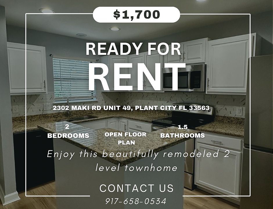 This charming 2-bedroom, 1.5-bath townhome with an open floorplan is located in Kentwood Park, Plant City. Upon entering, you'll be welcomed by the spacious first floor, featuring a large living area, a half bath, and a kitchen equipped with stainless steel appliances. Step outside to your own private patio space, perfect for relaxing or entertaining. Upstairs, you'll find two cozy generously sized bedrooms, each with spacious closets offering plenty of storage. The full bathroom sits conveniently between the two bedrooms. As a resident of the Kentwood Park Community, you'll have access to a refreshing pool to enjoy on those warm, sunny days and access to the clubhouse for special events. This home is ideally situated in the heart of Plant City, close to a variety of restaurants, shopping, and other amenities, with easy commutes to Brandon, Lakeland, Tampa, and I-4, making travel to surrounding areas effortless.