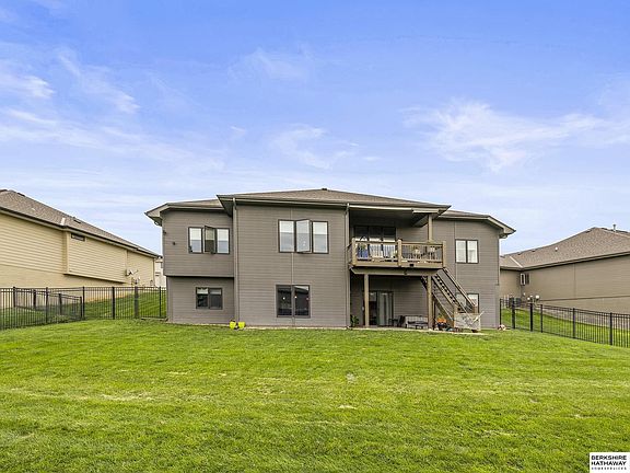 Beautiful walkout ranch in the popular Elkhorn School District! This well-maintained Ramm-built home is loaded with upgrades including fresh paint, engineered wood flooring, a stunning corner stone fireplace and large windows in the great room to bring in the natural light. The chef’s kitchen is a showstopper with white cabinetry, pantry, double ovens, lovely quartz countertops, and all appliances included. The dining area is open to the large covered deck with views of the fenced backyard and amazing sunsets. The spacious primary suite offers a whirlpool tub, gorgeous tiled floor and shower, and walk-in closet that leads to the laundry room. The finished lower level features a huge family room with wet bar complete with dishwasher and full size fridge - perfect for entertaining. Plus you will find 2 large bedrooms, 3/4 bath, and storage! Enjoy a deep 3-car garage and convenient location with easy access to schools, shopping, and dining.
