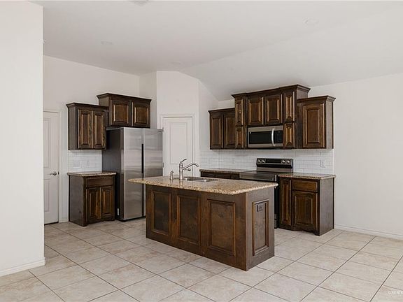 Welcome to Las Arboledas de Hidalgo! This beautiful 4-bedroom, 2-bath home offers an open-concept layout with tile floors throughout and plenty of natural light. The kitchen features granite countertops, custom wood cabinetry, stainless steel appliances, and a center island that opens to the spacious living and dining areas—perfect for entertaining. The primary suite includes a large walk-in closet and a double-sink vanity. Enjoy a private fenced backyard, two-car garage, and a convenient location near schools, parks, and shopping. Built in 2022 and move-in ready, this home combines comfort, quality, and modern finishes within Valley View ISD.