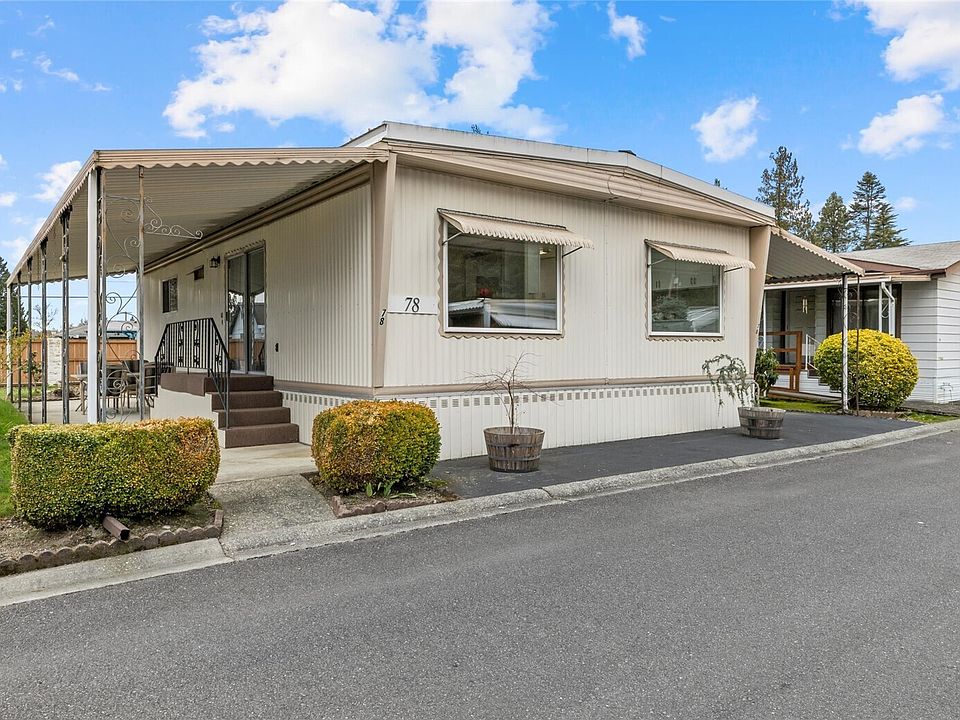Welcome to your new home in a serene 55+ park, offering a perfect blend of comfort and convenience. This move in ready 2-bedroom, 1.25-bathroom home is designed for easy living and modern comfort. Beautifully remodeled kitchen with updated stainless steel appliances, new counters, and slow close cabinets. Inside has fresh paint, new flooring and new fixtures through out. Outside a large carport provides covered parking for 2 cars, and the covered porch in the back is great for relaxing or entertaining guests. Take advantage of the clubhouse, swimming pool, fitness center, and more. Located near popular restaurants, shopping centers, and the Muckleshoot Casino Resort.