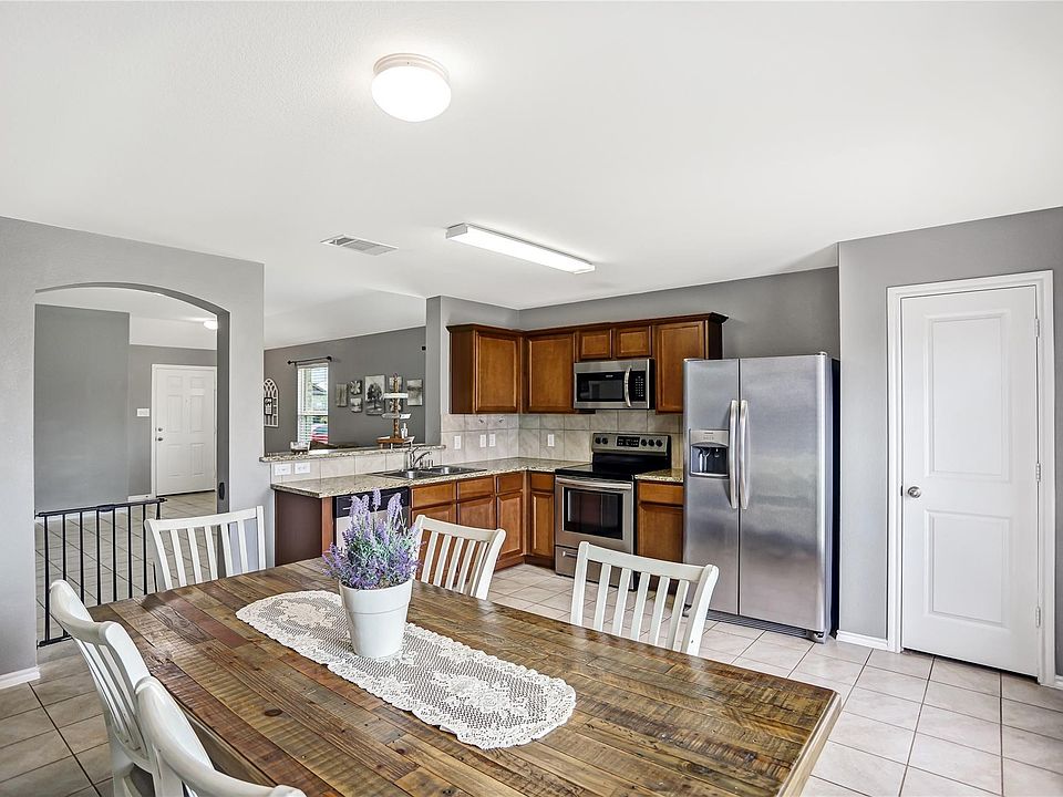 Welcome to this attractive 4-bedroom, 2-bath brick home located in the rapidly growing Travis Ranch community of Forney—a premier, master-planned neighborhood nestled near the shores of Lake Ray Hubbard.  This home offers a spacious, open-concept layout featuring a large living area with a passthrough bar that connects seamlessly to a stylish kitchen complete with stainless steel appliances, granite countertops, a pantry, and a casual dining space. The private primary suite includes an en suite bath for your comfort. Additional highlights include a separate laundry room, a fenced backyard with a patio—perfect for outdoor entertaining—and plenty of room for your family or guests.  Travis Ranch residents enjoy access to resort-style amenities including a community pool, splash park, inline hockey rink, playgrounds, and more. Located within the acclaimed Forney ISD, the neighborhood is home to Lewis Elementary School and offers access to innovative educational opportunities for all ages, including college and community courses.  Don’t miss this opportunity to own a beautiful home in one of Forney’s most desirable neighborhoods and finding your Piece of Texas!