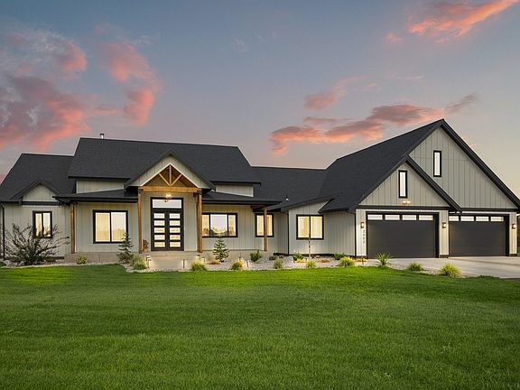 Goregeous 4Bd, 3Bth, 3442 Sq.Ft. First Class Rancher w/office. Located on 9.81 Acres of prime real estate. This incredible home offers an open Great room design with soaring 12', 10' and 9' ceilings, many with recessed lighting. Luxury LVP flooring, Heated tile flooring, Quartz counter tops throughout, Tile backsplashes & enclosures. The expansive kitchen features commercial grade monogram appliances, floor to ceiling cabinets w/lighting, a walk-in, room size pantry w/extra sink, breakfast bar & a semi-formal dining area. The master suite offers his & hers double vanities, plus a makeup vanity, a freestanding soaking tub, walk through tile shower, water closet & walk-in closet. The 3rd bathroom boasts a steamroom/shower! 4+ car attached garage along with a spacious mud room, w/storage cabinets throughout & a very roomy laundry room. There are two double glass sliders leading out to the covered patio & open patio overlooking the landscaped yard & lovely territorial views. Wood burning stove. 50+ gpm well.