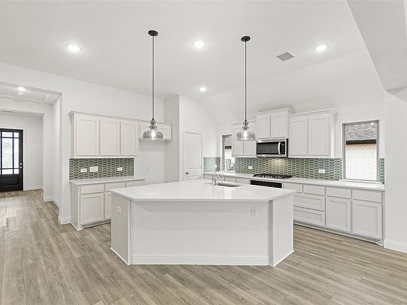 MLS# 20972115 - Built by Pacesetter Homes - Oct 2025 completion! ~ Located in the Meadow Run community and zoned to Melissa ISD, 2302 Wheatgrass Way offers a flexible two-story layout with thoughtful design and high-end finishes throughout. The entry opens to luxury vinyl plank flooring that continues through the main living areas and private study which gives you a quiet place to work without feeling closed off. The heart of the home is the open kitchen and family room. The kitchen features white shaker-style cabinets, quartz countertops, a long glossy hex tile backsplash, and GE stainless steel appliances including a built-in oven, microwave, gas cooktop with pot and pan drawers, and dishwasher. A large island with pendant lighting and a pull-out trash drawer adds both function and style. The primary suite is privately located at the back of the home, complete with a large walk-in closet, dual vanities, and a glass-enclosed tile shower with a built-in seat. Two additional bedrooms are downstairs and share a full bath between them, perfect for the kids or guests who don't mind sharing. Upstairs, you'll find a spacious game room, a third full bathroom, and a private bedroom that works well for a teen or guests. Out back, enjoy a covered patio with a gas drop for a future grill ready for weekend cookouts or relaxing evenings. With upgraded features throughout and a great location in Meadow Run, this home checks all the right boxes for everyday living.