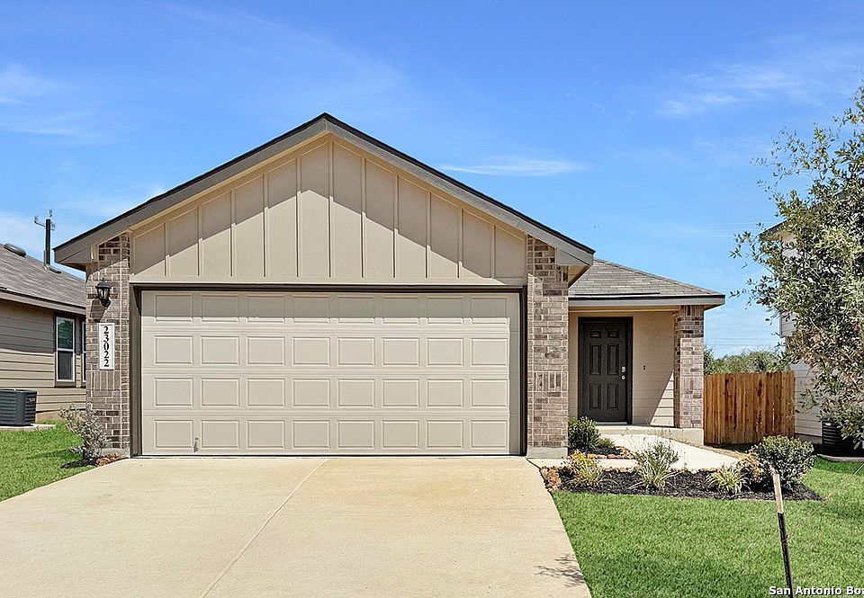 The Atlanta is a charming one-story home featured at Langdon in San Antonio, TX. Featuring 2 classic front exteriors, this 3 bedroom, 2 bathroom home also offers 1156 square feet of living space and a 2-car garage. A front porch (per plan) welcomes you into the home and opens to the gourmet kitchen which includes quartz counter tops, quality cabinets, stainless steel appliances and an open concept floorplan with the kitchen flowing seamlessly into the dining room and living room. The main bedroom has an attractive ensuite bathroom that features a quartz vanity countertop and quality cabinetry. Enjoy additional storage with a spacious walk-in closet located off of the primary bathroom. Your secondary bedrooms all feature quality carpet flooring and a closet, and can be used as bedrooms, offices, work out spaces or other bonus rooms. The possibilities are endless with The Atlanta floor plan. Additional features include sheet vinyl flooring in entry, living room, and all wet areas, quartz counter tops in all bathrooms and HOME IS CONNECTED base package. Using one central hub that talks to all the devices in your home, you can control the lights, thermostat and locks, all from your cellular device.