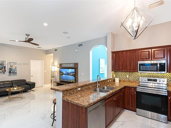Welcome to this stunning 4/3 two-story Salted System Pool home in the Peaceful and well-kept community of Enclave at Black Point Marina! Featuring vaulted ceilings, an open kitchen with newer SS appliances, newer W/D, and abundant natural light throughout. One bedroom and full bath on 1st floor offer the perfect in-law suite. Upstairs, the spacious primary suite boasts double doors, a seating area, & 2 walk-in closets. The other 2-BR upstairs also features walk-in closets. Solar panels for ultra-low electric bills, 2 AC (1 Newer). Having a private salt-system pool with/Spa & biking to Black Point Marina Path is what outdoor enjoyment in Miami is all about. One of the lowest HOAs in Miami $67 covers lush green areas and front lawn maintenance. Bring your pickiest buyer, it wont disappoint.