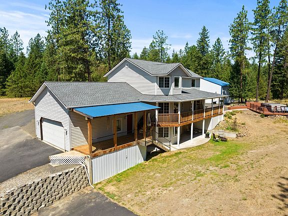 Discover the perfect blend of space, privacy & comfort just minutes from Spokane. Nestled on 5.16 serene, wooded acres, this beautifully maintained 6-bedroom, 4-bath home offers a peaceful escape w/ room for everyone. Spacious kitchen has hard-surface countertops, an island, ample cabinetry & a walk-in pantry. The open-concept design connects the kitchen seamlessly to the bright living and dining areas. Main floor features the master suite & laundry room. Upper level offers 4 add’l bedrooms & a full bath. Downstairs, you’ll find a 6th bedroom, another bathroom & expansive family & flex rooms. Outside is a deck overlooking your private haven w/ storage underneath & a separate 10' x 12' shed. A 30' x 40' shop boasts a concrete floor, 200 amp service, an RV door & an attached lean-to for boat or RV. RV cleanout for added convenience. Paved to property. New 50 year roof. Would be great for multi-generational living. Whether you're seeking tranquility, functionality or a place to grow—this home is a must see!