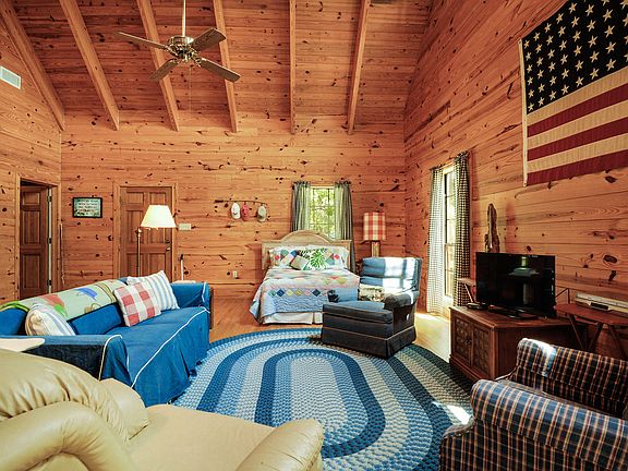 PARADISE! Ready to enjoy, almost completely furnished, 80 acres planted in longleaf pine, 1,024 SF (main floor) one bedroom, one bathroom, board & batten cabin w/ tongue & groove knotty pine interior walls, flooring is largely oak wood, a great loft accessed by ship's ladder kids will love, front & rear 8' covered porches (w/ rear overlooking lake & completely screened), two storage buildings (10' x 12' w/ entry door & 10' x 16' w/ roll-up door & entry door) on slabs w/ electricity. Open on one end for relatively easy expansion, about 1.5 miles west of Old Hwy 49 off Saucier Lizana Rd. There is a 5 +/- acre lake behind the cabin with a pier. Cabin has community water, electricity, land line, cable TV, central HVAC, oxygenated sewer treatment plant, & security system. Sleeps 9 people!