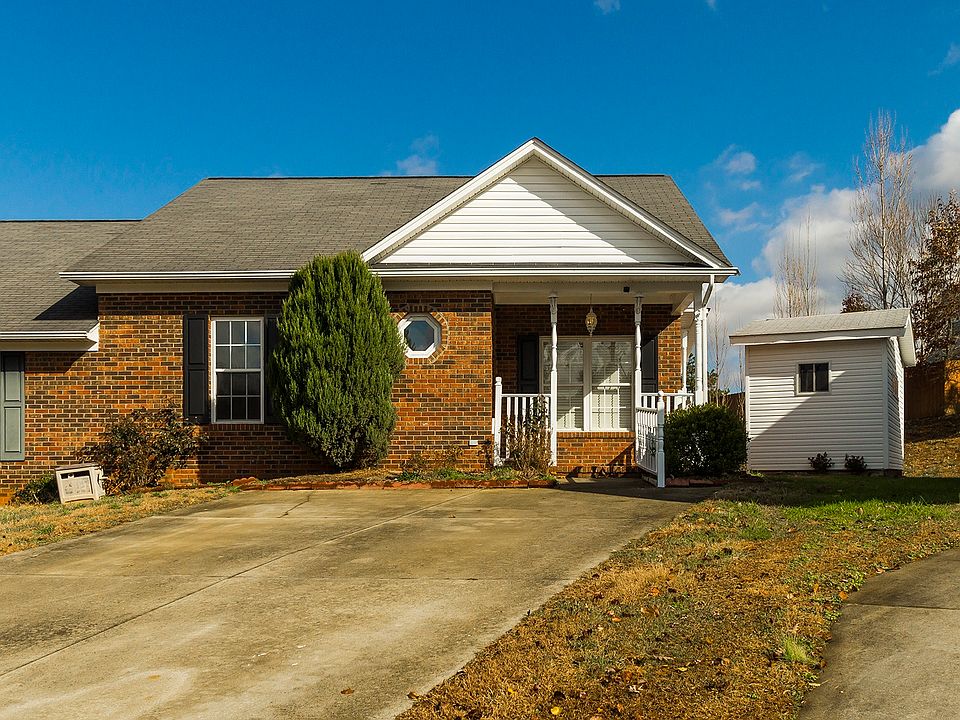 Spacious townhome w/lots of living space, located on less traveled, cul-de-sac lot.Home boasts laminate floors throughout, huge living room, big kitchen w/ lots of cabinet storage & plenty of room for a dining area, spacious master w/terrific closet space, guest room w/super cabinet space & storage; great den/sunroom area off back for separate relaxing; 8.4x16.4 storage building for all your yard tools or crafting. No city taxes or HOA dues.