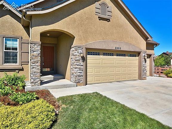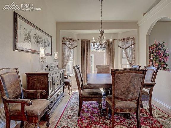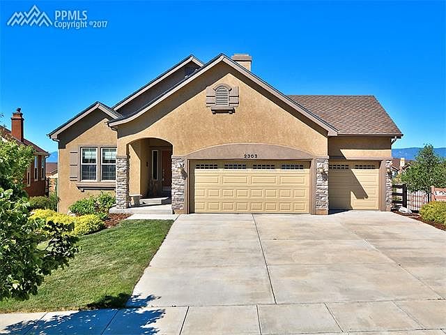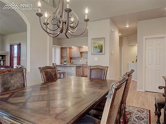 FABULOUS move in ready rancher in desirable Flying Horse with STUNNING Pikes Peak and mountain views! Perfect open concept layout with 2 beds up and 2 beds down. Expanded awesome deck off kitchen to enjoy the views. Kitchen w/ pullout shelves and great work and counter space. Extensive hardwoods on main level. Lower level w/ wet bar, entertainment area, walkout patio area, two additional bedrooms. Stucco, 3 car garage, fully fenced and landscaped, central AC, so much more! A pleasure to show!