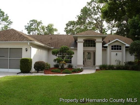 Repaired Sinkhole: Right in the Heart of Timber Pines. Everywhere you look you can see something happening. Golf Coarse view of Lakes, Lodge, the Hills. Beautiful open floor plan, kitchen overlooks large great room and enclosed lanai. Breakfast area, large 17" newer tiles and carpeting. Third bedroom makes a wonderful den or office. Reroofed and new A/C 12/2009. FURNITURE AND GOLF CART AVAILABLE SEPARATELY.
