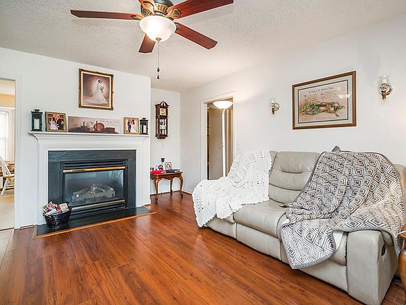 Neighborhood living at its finest in this cozy one-level home with cul-de-sac privileges. Be welcomed by the nicely landscaped yard, paved drive & rocking chair front porch. Walk in to a Living Room with laminate wood floors and gas log fireplace which leads to the eat-in Kitchen with pantry. Enjoy the backyard view from the bay window in the dining area. The split bedroom floor plan offers some owner privacy, private walk-in closet and bathroom with dual sinks. Enjoy peace of mind in this home with new roof, deck & HVAC. Call today to schedule your private tour.