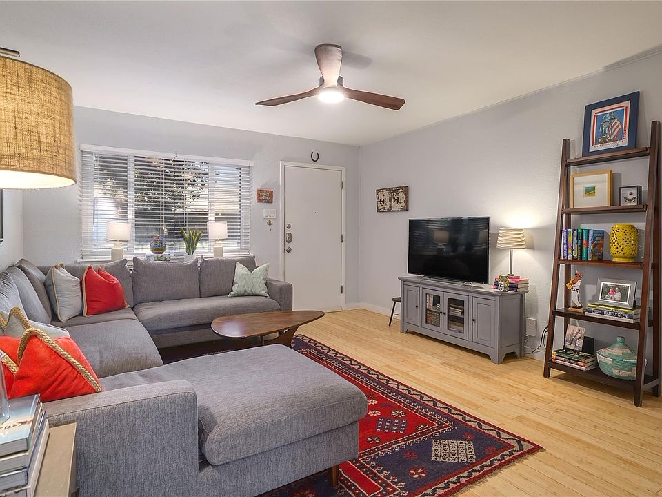 Welcome to 2303 East Side Drive, Unit 223 — a serene Travis Heights retreat just minutes from the heart of Austin. This beautifully maintained 2-bed, 2-bath condo offers a rare blend of privacy, style, and unbeatable location. Nestled among the trees, the second-story unit feels like a hidden gem, yet it’s just moments from SoCo’s vibrant shopping and dining, Zilker Park, Downtown Austin, and the brand-new H-E-B. Step inside to discover an inviting, move-in-ready home featuring hardwood floors throughout, modern finishes, and abundant natural light. The open layout flows seamlessly from the spacious living area to a contemporary kitchen—perfect for entertaining or relaxing after a day in the city. The lovely primary suite includes a spa-like en-suite bath, while the second bedroom offers flexibility for guests, work, or study. Recent community updates include a new roof, fresh exterior paint, new stairways, and partial siding replacement—giving buyers peace of mind. HOA dues conveniently cover water, trash, exterior insurance, and even cable/internet (via Spectrum or Google Fiber). Washer, dryer, and refrigerator all convey, making this truly turnkey. Enjoy peaceful mornings on your private balcony or walk to nearby favorites like Toasty Badger and Salty Donut for coffee and breakfast. With St. Edward’s University just steps away, this location balances urban access with neighborhood charm. Come see why this stylish Travis Heights condo is ready to welcome you home.