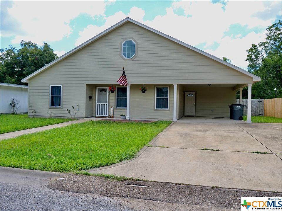 This 2008 built home is centrally located and resides in the well-established Airline Terrace neighborhood. This home features a hardiplank exterior and built-in carport. The exterior also features a covered front porch and large covered patio in the back, perfect for entertaining. The back yard is fully fenced and private. The interior features high ceilings and recessed lighting in the living room. Flooring consists of stained concrete and carpet (which is less than 2 years old). This home has over 1800 square feet of living space and a split floor plan. A large laundry room with a sink and storage could also be used as a craft room. The kitchen opens to the dining space and includes a built-in microwave and stove (both Maytag) and a new garbage disposal. There is also a utility room down the hall which could be used as a pantry.