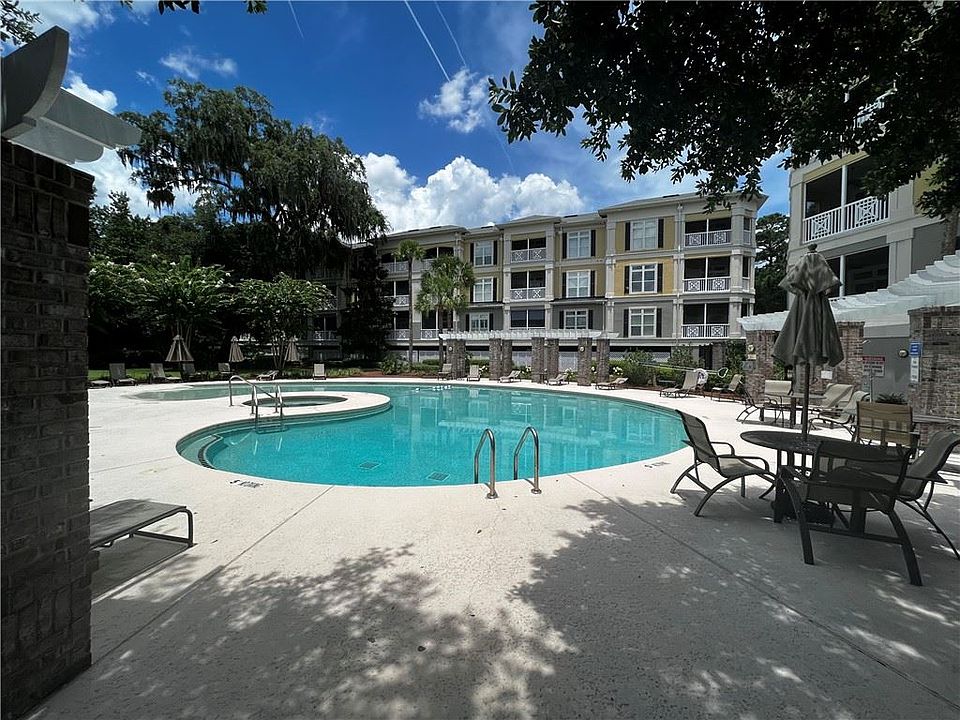Beautiful 3BD 3BA condo located in the gated community of Grand View. 2303 is located on the top floor with great views. Ceilings are 10ft. there are hardwood floors throughout the kitchen and living area and granite in kitchen ind bathrooms. Seller has made many improvements to this condo including new master bathroom shower with pool lights under bench, and shower is wheelchair accessible, a deep linen closet also added in master bathroom, new crown molding in master bedroom, custom closets, added storage in laundry room, added pantry, newer refrigerator and Bosch dishwasher. HVAC and condenser replaced in 2020 and refurbished hot water heater in 2022. Each unit comes with 2 assigned covered parking spaces and storage unit. Beautiful pool area with gazebo. Furnishings included are porch furniture and rug on porch, clock in kitchen, and attached mirror and table in front hallway. All appliances and plantation shutters included. Other furnishings may be negotiable. Abundant storage throughout unit.