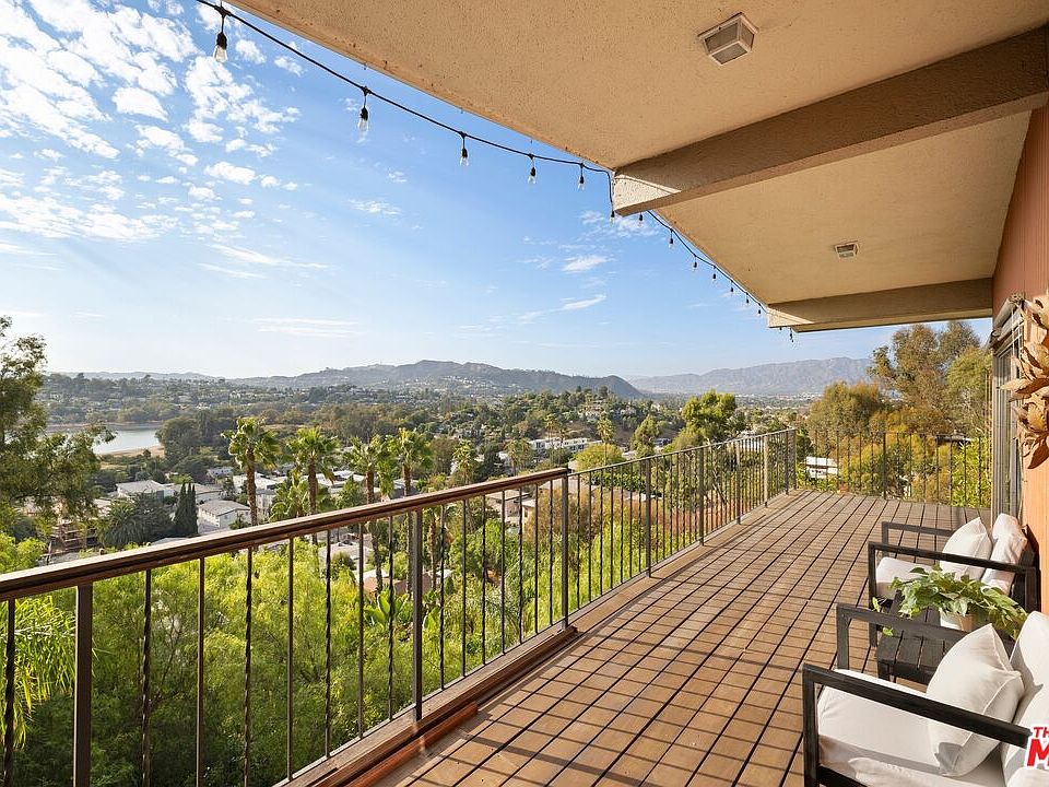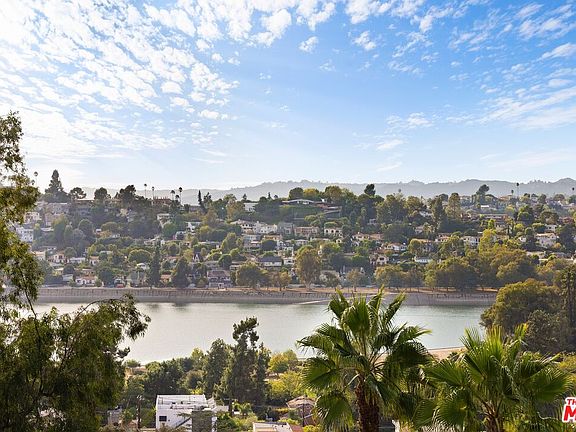 Resting on top of one of the highest points of Silver Lake with sweeping views of the reservoir, this classic midcentury retreat offers sweeping panoramas of the Hollywood Hills, the shimmering Silver Lake Reservoir below, and iconic LA landmarks including the Griffith Observatory and the Hollywood Sign. With such close proximity to downtown, cultural attractions like the Los Angeles Music Center and city hall are just ten minutes by car or twenty minutes by public transit, making this the perfect location for commuting professionals and lovers of the arts. The main level comprises a formal living room and primary suite, each accessing a large wraparound deck for quiet relaxation amidst striking vistas of lush treetops and rich architectural fabric. The main bath is dressed in smart designer tiling and fitted with a floating dual-sink vanity, rainwater shower, and soaking tub. Downstairs, the sleek kitchen features glossy cabinetry, stainless-steel appliances, and large peninsula with breakfast bar ledge and cooktop with hood. Wide-plank floors flow into the adjacent open-concept formal dining area and family room which opens via sliding glass to a second viewing balcony, perfect for al-fresco bites and drinks. Nearby, a media or gaming lounge has picture windows inviting natural light within. Secondary bedrooms and bathrooms are well appointed and maximize use of space. On the lower level, discover a guest apartment equipped with its own kitchen area with full-size refrigerator, washer, farm sink, and island. There is also a living room which opens to the outside as well as a spacious bedroom and delightful en-suite bath, allowing the option for additional passive income. Enjoy a slice of paradise enveloped by mature trees and verdant plantings from the patio, hot tub, and terraced gardens with vivid sunsets as an ideal backdrop. For modern convenience, there is also an EV charger. Celebrated for its creative vibe and diverse culture, Silver Lake draws artists, musicians, writers, and celebrities alike. Experience the beauty of Los Angeles at nearby Elysian Park Trail and Angels Point, known for scenic cycling and hiking paths plus fantastic views of the DTLA skyline. A variety of trendy boutiques, shops, cafes, and buzzing nightlife are also just moments away. Welcome!