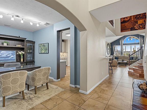 Welcome to this beautifully updated 4-bed, 2.5-bath home perfectly situated on a spacious pie-shaped lot with no rear neighbors. Inside, discover ceramic tile flooring, hardwood upstairs, & elegant spaces including a formal dining room, private study, & bright family room with a stone fireplace. The updated kitchen offers quartz countertops, cabinetry, herringbone backsplash, stainless steel appliances, & smart lighting. The first-floor primary suite offers vaulted ceilings, a spa-inspired bath with dual vanities, a soaking tub, a frameless shower, & a custom walk-in closet. Upstairs features a versatile game room, media room, & generous secondary bedrooms. Step outside to your private backyard paradise with a sparkling saltwater pool, raised spa, screened patio, pergola, & two firepits—all surrounded by lush landscaping. Smart home features include Nest thermostats, Ring cameras, smart garage doors, & a generator-ready hookup. Call today to schedule a private tour!