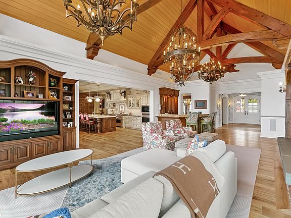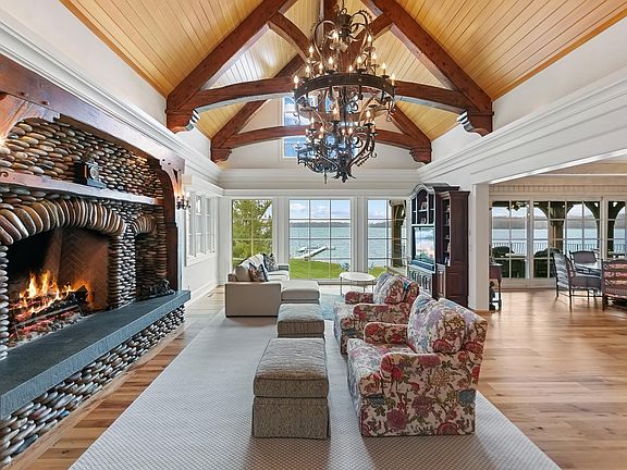 Exquisite Minnetonka Beach residence thoughtfully designed to showcase panoramic water views overlooking 200’ of rip-rap shore at every turn! Enjoy the open and flowing floorplan featuring vaulted ceilings with gorgeous wood beam details, & walls of windows allowing for natural-light filled spaces! Beautiful gourmet kitchen with doors opening to the expansive lakeside patio with outdoor fireplace; formal dining room with folding glass doors opening to the patio with two-sided stone fireplace; library with French doors offering access to the porch, main-level Primary Suite with floor-to-ceiling windows featuring long water views. The spacious upper-level includes a large junior suite with private deck & outdoor fireplace, guest bedroom, workout room with sauna, office & large bonus room! Walk-out lower level with private guest suite & expansive storage area. Additional amenities: oversized heated garage, pool & hot tub. Impeccably sited! Guest house property also available for purchase.
