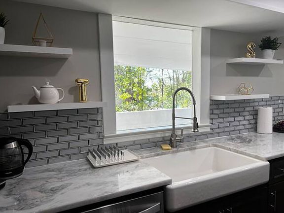 Surrounded by gorgeous, wooded surroundings, next to Lake Olmstead. You will wake up to the sound of birds singing, as you sip your coffee on one of two outside patios. All three upstairs bedrooms are brightly lit with lots of sunshine. The downstairs bedroom can be entered via the living room or its own private entrance. The entire home is furnished in a contemporary and modern style and is a true escape.