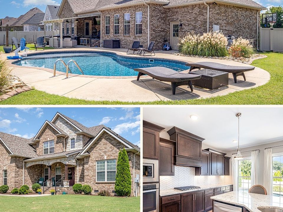 Large front porchNew vinyl fenceNew saltwater inground poolBeautiful stoneCustom pantryLarge back porchStainless steel appliances
