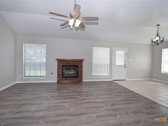 Welcome to this charming residence nestled in the peaceful community of Harker Heights, TX. Boasting a classic brick facade and a welcoming entry, this home exudes curb appeal. Inside, find a blend of comfort and style with a spacious living area featuring gleaming wood-like flooring and a cozy fireplace, perfect for relaxation. The kitchen, complete with ample cabinetry and modern appliances, overlooks the living space, ensuring you're always part of the conversation. Each bedroom is accented with plush carpeting, ceiling fans, and generous natural light, offering a personal retreat for rest and rejuvenation. The primary bathroom includes a luxurious soaking tub with tile surround, dual vanity, and separate shower. Enjoy Texas sunsets in your private backyard, complete with a patio and a lush lawn. This meticulously updated property features fresh paint throughout, both inside and out, including all ceilings. Enjoy the modern touch of updated lighting fixtures, ceiling fans, and mini blinds. The kitchen is equipped with a new dishwasher and recently replaced window glass (May 2024). Additionally, a new HVAC system was installed in August 2024, ensuring optimal comfort year-round. This home is truly ready for you to make it your own!