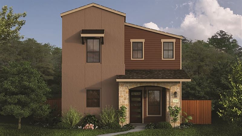 The contemporary expression of luxury and efficiency, the beautiful two-story Aston is a three bedroom, three-and-a-half bath yard home purpose built for the active urban professional. Blessed with an open plan over 2,200 square feet, the Aston features a huge, bright living room, adjoining dining area, large gourmet kitchen with extra counter space and bar seating, spacious upstairs loft, multi-windowed upstairs flex room, oversized laundry and a two-car garage. Stylish and well-lit, the home also includes airy 9' and 10' ceilings, great natural light through banks of tall windows, a breezy covered patio, and a relaxing covered front porch with ceiling fan ready to welcome friends and neighbors alike. Roomy and upscale, the kitchen features beautiful 42" upper cabinets with Groveland panels, upgraded Silestone countertops, modern soft-close doors and drawers, sophisticated Fresnel Lens pendant lighting, and luxurious Kitchenaid appliances including a gas cooktop and oven. Secluded downstairs, the owner's suite features a large, peaceful bedroom, enormous walk-in closet, and a spa-inspired bath with dual Silestone vanities, Align brushed nickel fixtures, and a large tiled shower with frameless glass enclosure. Additional elements include a laundry room complete with cabinets, sink and countertop, lovely 8' Riverside interior doors on the first floor, and gorgeous wood floors at the living room, kitchen, dining and owner's suite.