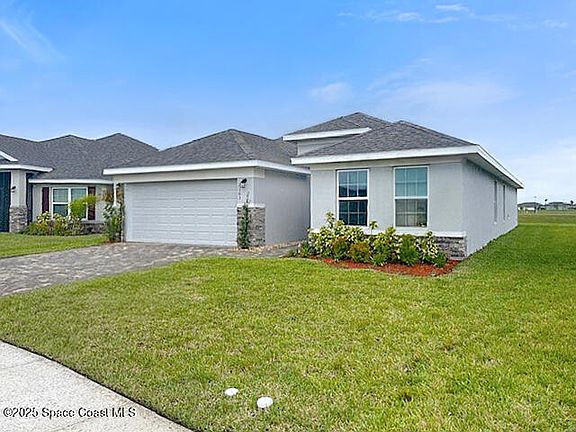 Limited time 10k Flex Cash with approved lender and must close in 30 days. This floor plan offers a perfect blend of elegance and functionality. Located in a desirable gated community, this property is designed with both comfort and style in mind. Enjoy the sparkling community pool, perfect place to relax or socialize with friends. The beautifully landscaped surrounding, along with paver driveways and stone accents, add both luxury and charm to the community, Located within walking distance to Sunrise Elementary and the new Publix shopping center off Babcock and I-95. Sample photos shown.
