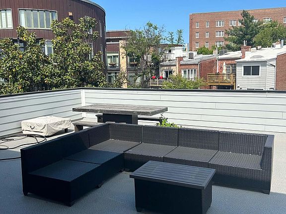 Welcome home to this gorgeous two- level condo in trendy Adams Morgan with a huge PRIVATE ROOFTOP DECK! This home is on trend and boasts richly stained hardwood floors, an exposed brick wall, elegant moldings, gourmet kitchen with prep island, stainless steel appliances, two full baths with marble tiles, and an incredible PRIVATE (over) 800 Sq Ft roof top deck with over 1000 SF of space for relaxing, entertaining, and barbecuing, and viewing July 4th fireworks at the Washington monument! All roof top terrace furnishings are INCLUDED in the rent (Outdoor TV, 6 burner Weber Grill, Outdoor cooking station, Outdoor Couch, Table and benches)! Rent includes water, sewer, and trash. Off Street PARKING is available. This is a MUST SEE for luxury living in NW DC! Preference will be given to longer term leases and those who need parking. Verification of employment, credit history, and financials are required. Incredibly responsive landlord and all issues will be fixed promptly.