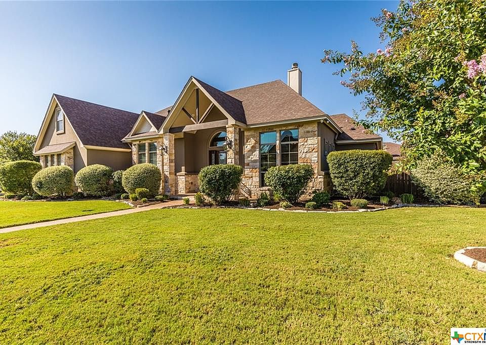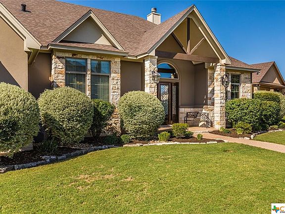 PARADE OF HOMES STUNNER IN D'ANTONI'S CROSSING! Nestled on the corner lot of a cul-de-sac drive, this 4 bedroom, 3 bath "hill country styled" home offers open floor plan living w/high end finishes. Amenities include travertine floors throughout main living areas, recessed ceilings w/wood beams, & gorgeous interior stonework. Designated study is anchored by wood floors behind French doors while the kitchen offers granite countertops, custom cabinetry, & a pot filler over a gas cooktop! This split bedroom plan provides for a spacious master that opens up into a double vanity bath w/soaker tub & separate step in shower. Secondary bedrooms are good sized & have access to a Jack & Jill bath as well as a 3rd full hall bath. An upstairs 2nd living room is spacious w/full door access to attic storage. The gem of the home is the recently added screened in patio providing a 3rd living & dining space w/stone fireplace & room for a crowd! A perfect spot after time spent at the neighborhood pool!