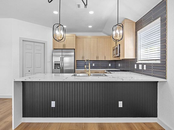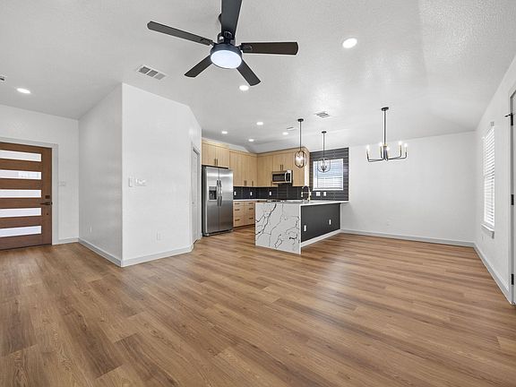 Step inside this stunningly updated single-story home offering 1,679 sq. ft., 4 bedrooms, and 2 full baths. Every detail has been thoughtfully designed with modern finishes and stylish touches throughout. The open kitchen features quartz countertops with a waterfall-edge peninsula and breakfast bar, stainless steel appliances, and luxury wood cabinetry accented with black and gold fixtures a space that blends beauty and function. Enjoy the warmth of wood-look luxury vinyl plank flooring throughout the home, giving every room a timeless yet practical touch. Both bathrooms are sleek and modern, designed with comfort in mind. Outside, relax or entertain under the huge covered patio, and oversized backyard perfect for Texas evenings. Location is everything and this home delivers. Just 5 minutes from the new Samsung plant, this property offers an easy commute while still being close to the charm of downtown Taylor, where you'll find a growing mix of boutique shops, local restaurants, live music, and small-town entertainment. Taylor is known for its award-winning barbecue, arts scene, historic downtown square, and year-round festivals, making it a place where community and convenience meet. This home blends style, comfort, and location a perfect lease opportunity in one of Central Texas's fastest-growing cities.
