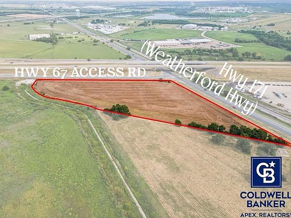 Prime commercial development land with approximately 7.4 acres located at southwest corner of US 67 access road and Highway 171 (Weatherford Highway). This property is just east of The Depot at Cleburne Station, which is home to the Cleburne Railroaders Ballpark Stadium. Approximately 793 feet frontage on US 67 access road and approximately 671 feet frontage on Highway 171 (Weatherford Highway). Agricultural Land exemption for tax purposes. City of Cleburne informs that 12” PVC Water line runs along Weatherford Hwy. (see supporting documents). This exceptional approximate 7.4 acres offers a rare opportunity for commercial development in a high visibility location. This property benefits from its proximity to a growing entertainment and commercial hub. The site is ideal for retail, office, hospitality, or mixed-use development, catering to both local residents and visitors drawn to the area’s recreational and cultural attractions. Zoned as Regional Commercial District with current AG tax exemptions, offering flexibility for future development plans.