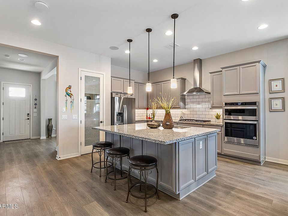 WOW!! This FORMER MODEL HOME is beautifully appointed & packed with high-end upgrades. 10' ceilings & 8' interior doors, the open-concept design is both spacious & inviting. Stylish wood-look tile flooring throughout & plush upgraded carpet in the bedrooms! BETTER THAN NEW with Designer details in every room from decorative trim to paint schemes. GOURMET KITCHEN, equipped with GAS appliances, built-in range, oven, microwave, upgraded hood vent & dishwasher.Stunning GRANITE counters, stylish backsplash, sleek grey 42'' upper cabinet.The luxurious owner's suite boasts a FABULOUS SHOWER along with space to relax in a spa-like atmosphere. Step outside to a beautifully landscaped backyard WITH hot tub & water feature for relaxing or entertaining.ALL HOMES ARE NOT CREATED EQUAL.COME BUY TODAY!