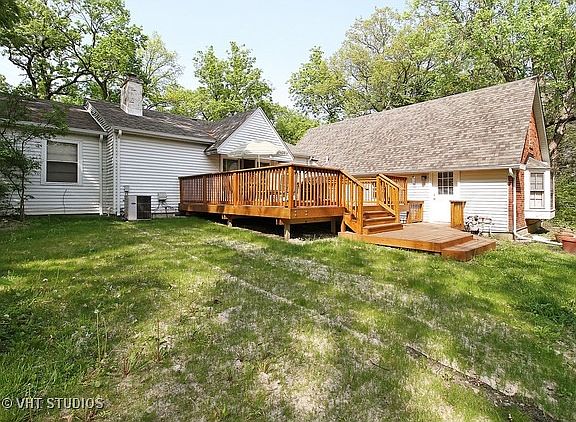Charm and character greet you when you enter into the gathering room. Beautiful unique home, a hide-a-way in the woods. Winding driveway leads to elegant front entrance with columns at entry. Warm inviting fireplace in living room. First floor master bedroom with glamour bath. Country kitchen with fireplace and large table space and lots of windows. An acre plus of serene yard and huge deck plus 3 car garage - recent rehab.
