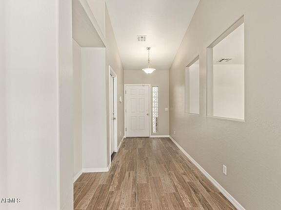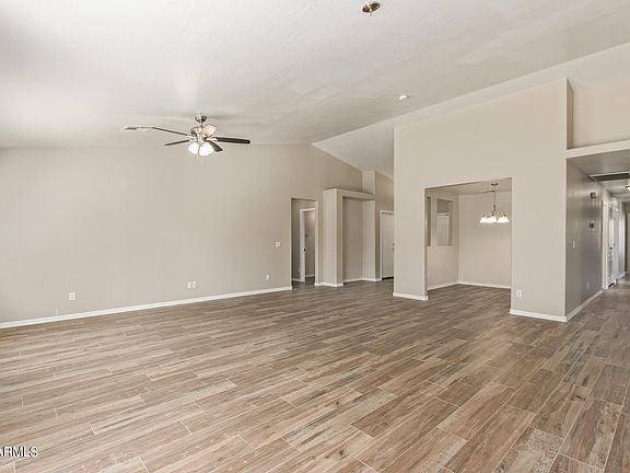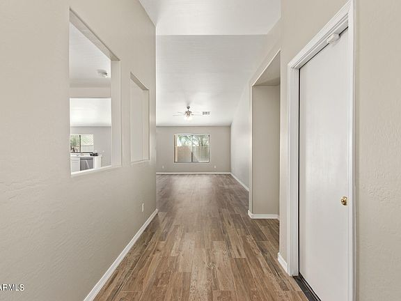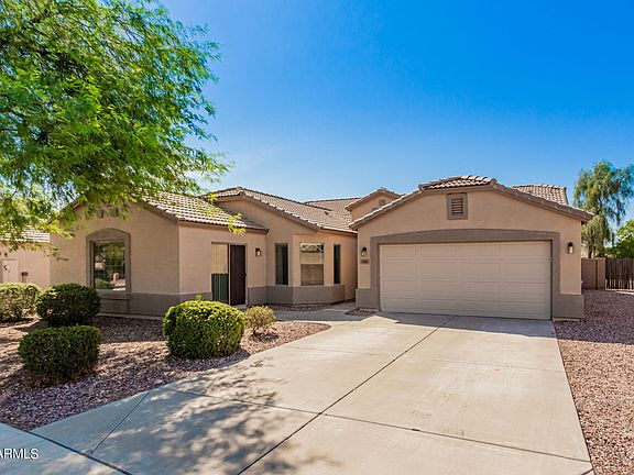 Adorable 5 bedroom, 3.5 bath single-level home in Sundance Community is now available in Buckeye! Offering a 2-car garage and RV gate. Discover an inviting foyer leading to the generous-sized great room with Arcadia door to the back patio. Wood-look tile flooring, vaulted ceilings, ceiling fans, and a formal dining room are features you'll like. Beautifully remodeled kitchen exhibits track lighting, white cabinets with crown moulding, a two-door pantry, SS appliances, and a center island with a breakfast bar. Head to the airy main retreat to find plush carpet, private outdoor access, a pristine ensuite with dual sinks, and a walk-in closet. Quaint backyard enjoys two covered patios and tons of space for memorable gatherings.