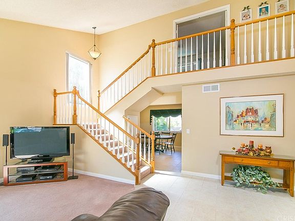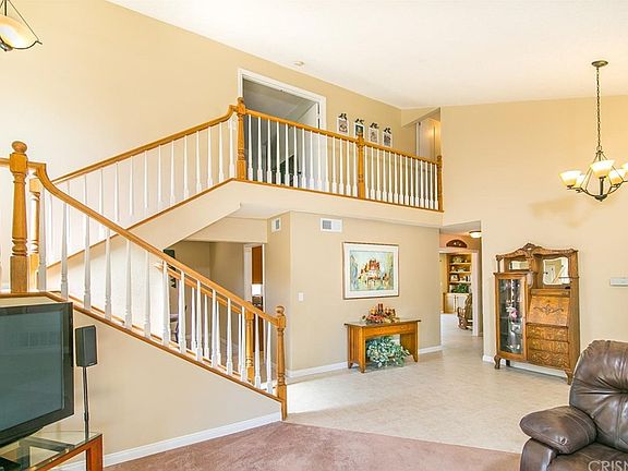 Amazing 5 bedroom POOL HOME with VIEWS and RV ACCESS in Valencia! Curb appeal the moment you drive up to this 5 bedroom, 3 bath, 2508 sq foot home with entertainers back yard! Enter foyer to vaulted ceilings and spacious living room. Updated lighting throughout. Formal dining room with scenic views of the mountains. Remodeled kitchen with Shaker style cabinets, quartz counters, newer stainless steel appliances, wine fridge and lots of storage. Family room with brick fireplace and built in shelves. Downstairs bedroom with plantation shutters. Master bathroom recently remodeled with tiled floors, Corian counters and newly tiled shower. Spacious cedar walk in closet with built in closet organizers. Upstairs hall bath tub re-glazed and new fixtures. Four upstairs bedrooms (5 total). Pebble-Tec salt water pool and spa. Built in gas BBQ and bar area for entertaining, gas fire pit and deck overlooking the valley. Backyard facing windows all have awnings for shade and heat reduction. Direct access garage. All windows are vinyl with invisible screens, and sliders are a year old. Full copper plumbing. Newer pool sweeper, newer pool pump, resurfaced BBQ countertop. This property is ideal for entertaining! A must see!