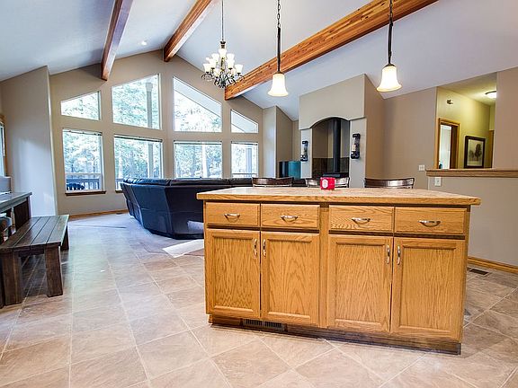 Entertainers delight on 5+lushly treed acres w/30X42 Shop/Barn+16X42 lean-to w/RV height doors.Desirable open floor plan. Master suite w/,private slider to deck.12 GPM well. Wall to wall & floor to ceiling windows provide incredible natural light & stunning views abundant w/moose,deer,turkeys,countless species of birds,& much more!Outdoor living w/full covered back deck,huge protected stamped cement patio,& trail for off road vehicles & perfect for long beautiful walks. Do not miss this property!!!