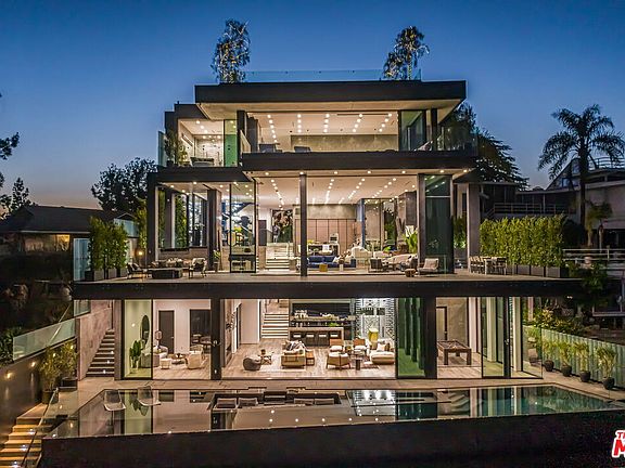 Tucked away on a coveted cul-de-sac in prime Bel Air, 2304 Donella Cir is a striking architectural gem that captures the essence of modern luxury. Perched above the city with sweeping views of the hills and lake, this four-level estate is a masterclass in design and sophistication.At the heart of the home, a custom Italian kitchen makes a bold statement with sleek black counters, a dramatic waterfall island, and a showstopping glass-enclosed wine display. The primary suite feels like a five-star retreatcomplete with a double-sided fireplace, a spa-worthy bath wrapped in exotic Spanish tile, steam shower, sculptural soaking tub, and dual stone vanities.An elevator connects all four levels, featuring a grand entertainment lounge, a walk-in wine cellar for 1,000+ bottles, a private gym, and more. Additional highlights include a gated driveway, 5-car garage, Sonos sound system, designer LED lighting, crystal chandeliers, and wide-plank white oak floors. Floor-to-ceiling glass walls dissolve into expansive terraces, creating seamless indoor-outdoor flow. The infinity-edge pool hovers effortlessly above the lush landscape, blending luxury with tranquility. A bold statement in one of Los Angeles' most prestigious enclavesthis is Bel Air living redefined.