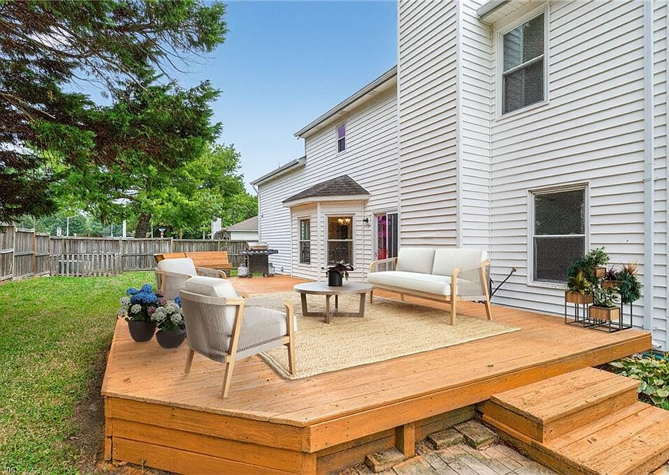 This charming Colonial-style residence offers nearly 2,400 square feet of well-designed living space on a spacious (1/4) acre lot in a peaceful cul-de-sac. The open & inviting floor plan is perfect for both everyday living & entertaining. A beautiful kitchen features granite countertops, S/S appliances & ample storage! Upstairs, generous bedrooms & a relaxing primary suite provide room for all. Step outside to enjoy the expansive backyard-ideal for gatherings, gardening, or simply unwinding in your own private oasis. Location is everything, and this home is just minutes from some of Virginia Beach's top attractions: Virginia Beach Boardwalk & Oceanfront - enjoy dining, shopping, & live entertainment , the ViBe Creative District - a vibrant hub of art, coffee shops, and local artisans. Sandbridge Beach - offering both lively surf & calm waters for family fun. With its classic charm, modern updates, & unbeatable location, this home is truly move-in ready and ready for you.
