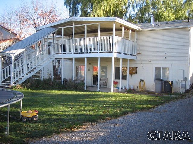 Stretch out on this 1.03 acre mini-farm. Hidden from street view are the 30x50 heated garage with bathroom, 24x24 detached heated garage, fruit trees, garden, room for horses. This ranch with basement has two living units at present, with the lower walk out level providing 2 bedrooms, 2 baths, one with a roll-in shower, fruit storage and large rooms. Upper level has 3 bedroom, 2 baths, some hardwood floors, tile and carpeted floors. Spacious covered deck/patio looks out on back yard. No HOA - there is a $100 annual fee paid to Redlands Water Users for Irrigation Water.