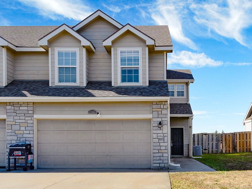 Looking for convenient and low maintenance living? This 3 BD, 2.5 BA half-duplex home with two car attached garage and large wood-privacy fenced in back yard w/ storage shed, includes main floor living/dining room with vaulted ceiling, gas fireplace, dining area with space for a full size table featuring kitchen with pass through window to the dining area, pantry, full size laundry and mud room w/ adjacent half bath directly off the garage. Brand new flooring on the main level and freshly painted, move-in ready for YOU! All kitchen appliances (newer) and clothes washer & dryer included. Upper level includes the primary bedroom with dual closets and en suite bathroom w/ double vanity sinks, top-of-stairs landing/sitting area to use as suits your needs, two more conforming bedrooms, and another full bathroom w/oversized vanity. Conveniently location to sports fields and JC High School. No HOA.